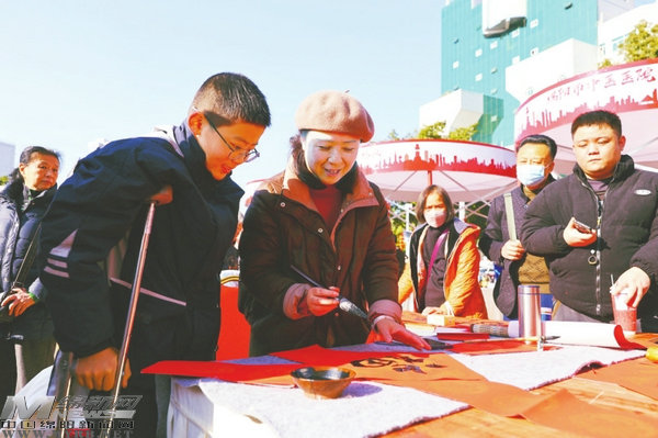 在中醫(yī)非遺項(xiàng)目特色體驗(yàn)區(qū),綿陽(yáng)市中醫(yī)醫(yī)院的醫(yī)生現(xiàn)場(chǎng)問(wèn)診,市民排著長(zhǎng)隊(duì)沉浸式體驗(yàn)中醫(yī)傳統(tǒng)特色文化,爭(zhēng)相選購(gòu)特色中醫(yī)藥產(chǎn)品、香囊等;在漢服體驗(yàn)區(qū),精美的衣飾,配套的發(fā)簪、絨花、耳墜等飾品,吸引了很多愛(ài)好者一邊參觀,一邊沉浸式體驗(yàn)傳統(tǒng)服飾之美;在書(shū)法展區(qū),專業(yè)老師揮毫潑墨,一個(gè)個(gè)寓意祥和的“福”字,一副副充滿喜氣的春聯(lián)躍然紙上;在舞臺(tái)區(qū)的城市路演主題活動(dòng)中,飛花令、全民K歌輪番上演,福袋、綿陽(yáng)文創(chuàng)等各式禮品發(fā)不停……各式各樣的互動(dòng)環(huán)節(jié)讓市民和游客在逛大集、購(gòu)好品的同時(shí),體驗(yàn)到豐富多彩的文化盛宴。