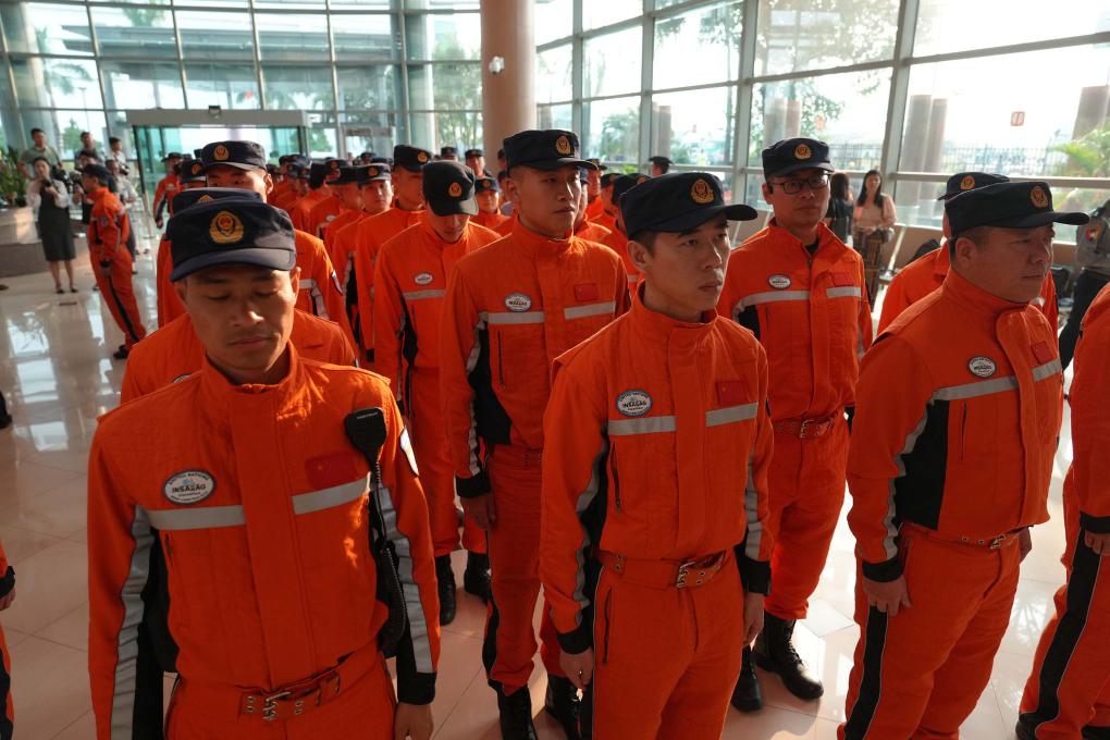 當地時間29日晚,中國香港特別行政區救援隊抵達緬甸仰光國際機場。